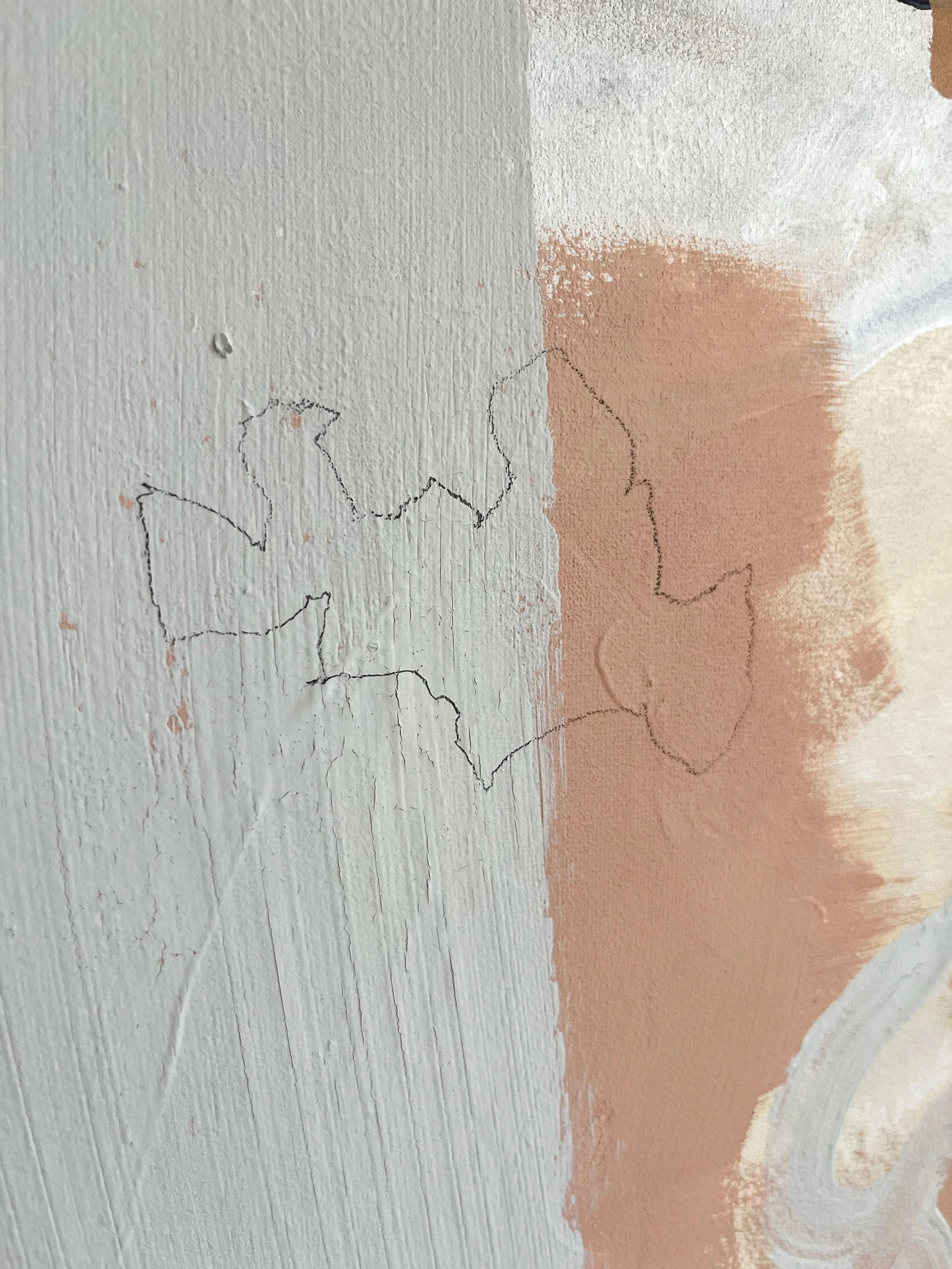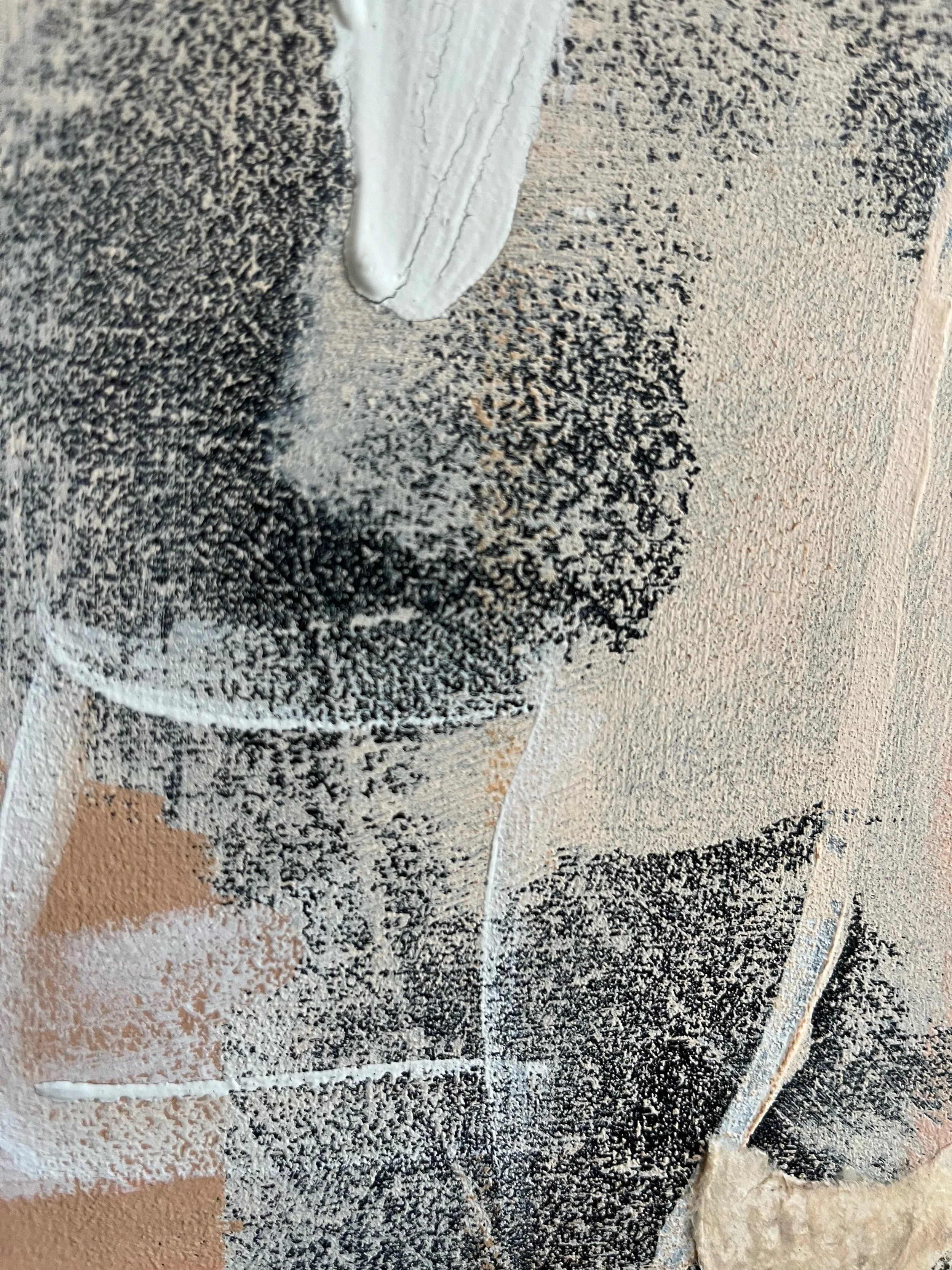 Chalk paint, waxed concrete, acrylic, pastel and crayon on cotton oak canvas.
