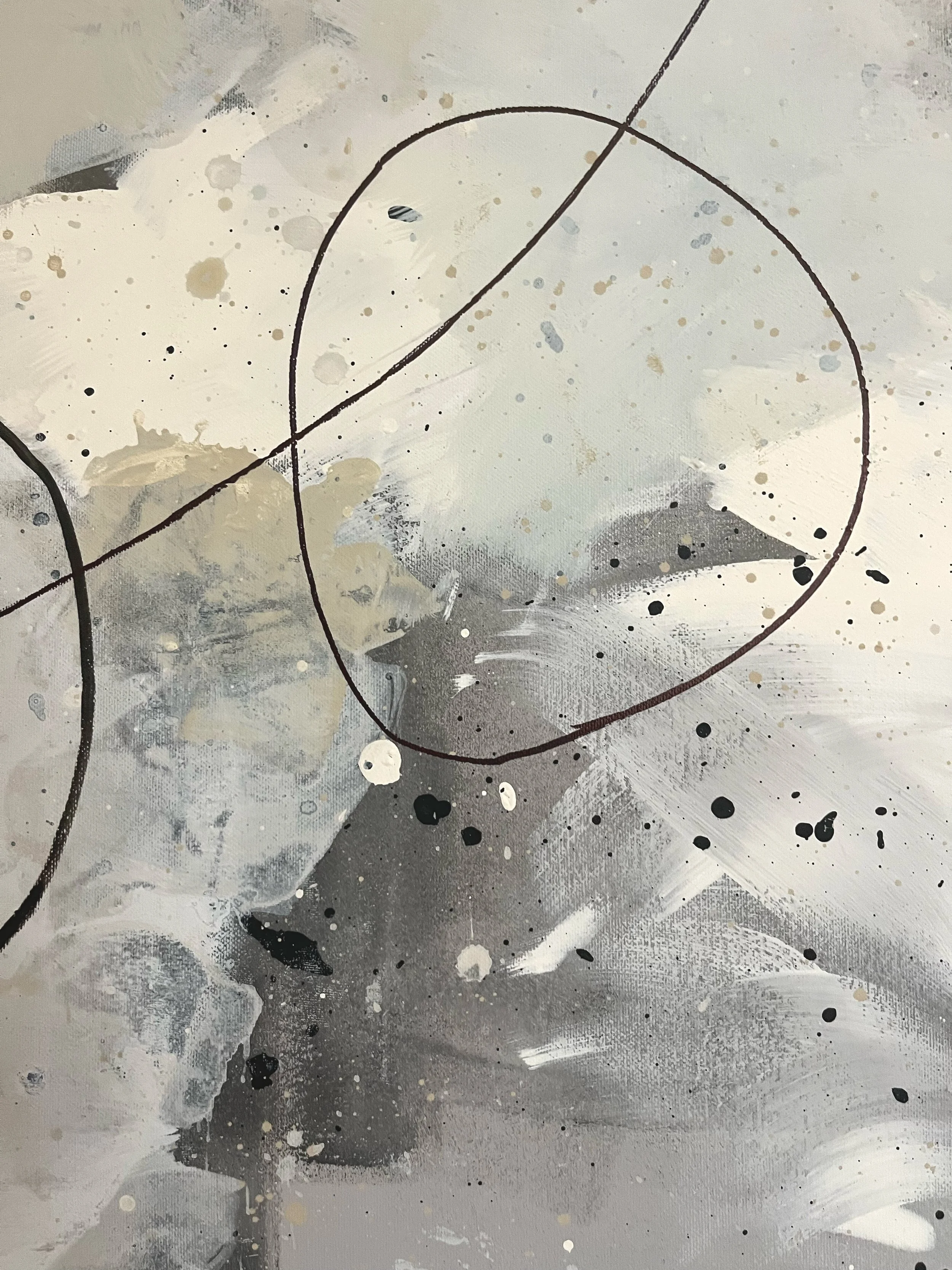 Chalk paint, acrylic and pastel on a cotton/oak canvas.