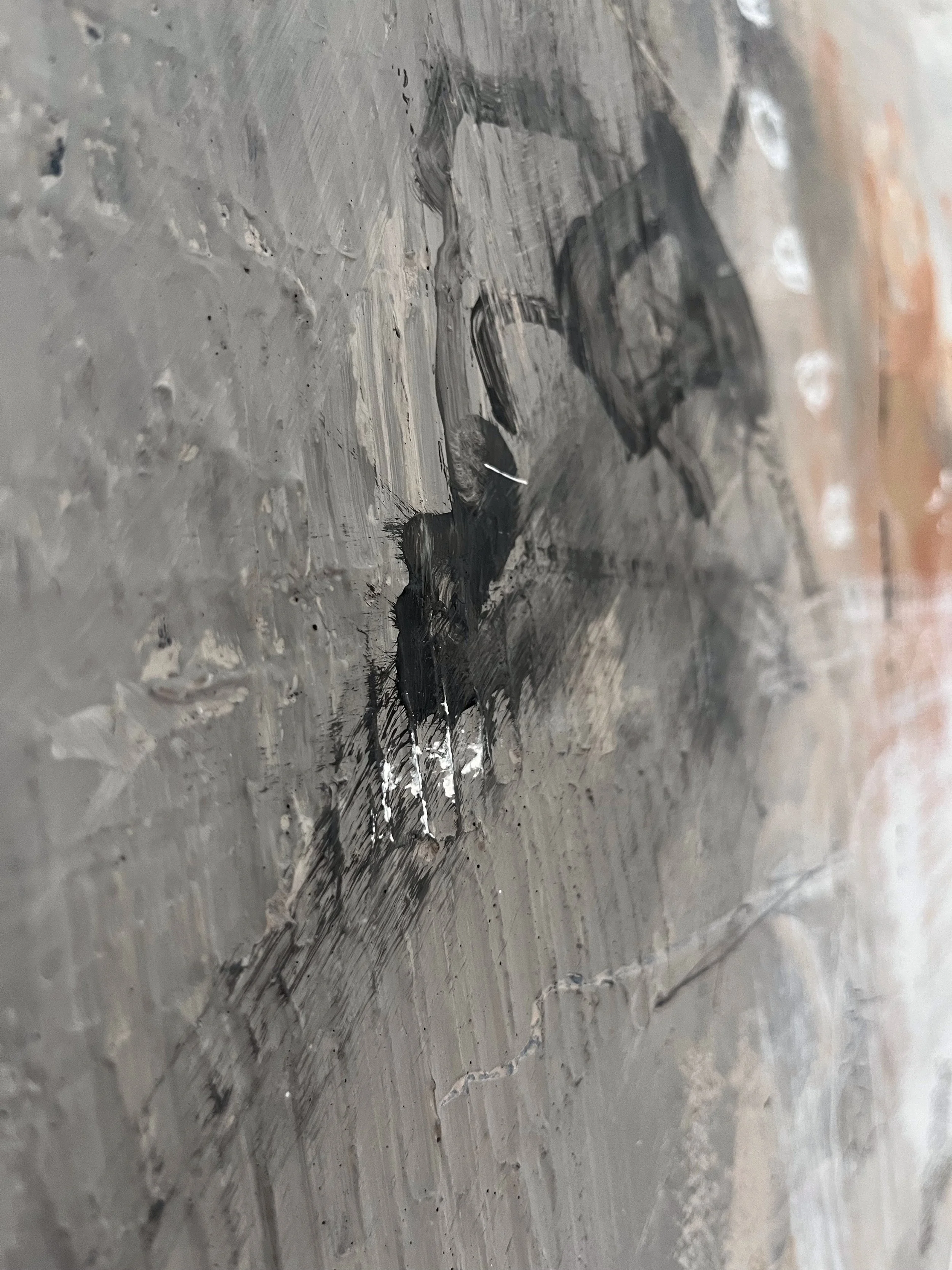 Chalk paint, acrylic and pastel on a cotton/oak canvas.